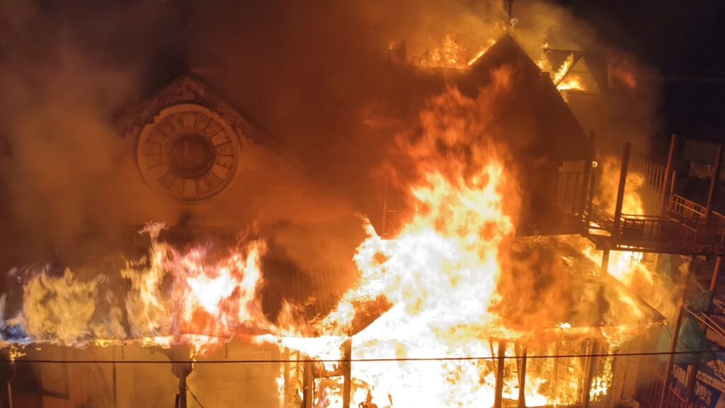 नैनीताल । मल्लीताल के मोहनको चौराहे में बुधवार देर रात्रि एक भवन के प्रथम तल में अज्ञात कारणों के चलते भीषण आग लग गई। देखते ही देखते आग ने विकराल रूप ले लिया देर रात दमकल की टीम आग पर काबू पाने का प्रयास करती रही। जानकारी के अनुसार रात्रि दस बजे घर के अंदर से अचानक धमाका हुआ और धुएं के साथ आग लग गई। पल भर में आग ने पूरे मकान को अपनी चपेट में ले लिया। आग की घटना से क्षेत्र में हड़कंप मच गया। सूचना पर पहुंचे स्थानीय लोगों ने घर के अंदर फंसे लोगों को किसी तरह से बाहर निकाला और सूचना पुलिस को दी। सूचना मिलते ही पुलिस, एसडीआरएफ व अग्निशमन विभाग की टीम मौके पर पहुंच गई। लगातार पानी की बौछार कर आग पर काबू पाने का प्रयास किया जा रहा है।फिलहाल आग लगने के कारणों का पता नहीं चल पाया है और रेस्क्यू अभियान जारी है। घर में एक महिला के फंसे होने की भी सूचना है। पुलिस प्रशासन ने एहतियात के तौर पर आसपास के घरों को खाली करा दिया है। साथ ही क्षेत्र की विद्युत आपूर्ति बंद करा दी गई है।