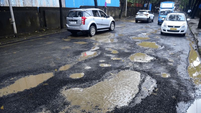 (जाम की समस्या तो पहले से ही अब सड़कों पर पड़े गड्ढे सुरक्षा के लिए खतरा ऊपर से मक्का की दुकानों का आतंक)