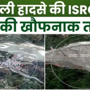 (योगेश पांडे) उत्तरकाशी/ धराली में इसरो द्वारा प्राप्त सेटेलाइट चित्र में एक चित्र में आपदा के बाद...