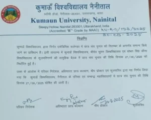 (योगेश पांडे) नैनीताल। कुमाऊँ विश्वविद्यालय, द्वारा निर्गत एक्रेडिमिक कलेण्डर में छात्र संघ चुनाव को सितम्बर के अन्तर्गत सम्पन्न...