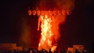 (65 फीट ऊँचे रावण के पुतले कों हल्द्वानी रामलीला ग्राउंड में गुरुवार विजयदशमी के अवसर पर रात...